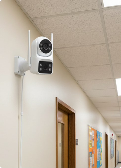 The Sentinel is ideal for monitoring hallways, ensuring coverage and promoting a secure atmosphere.